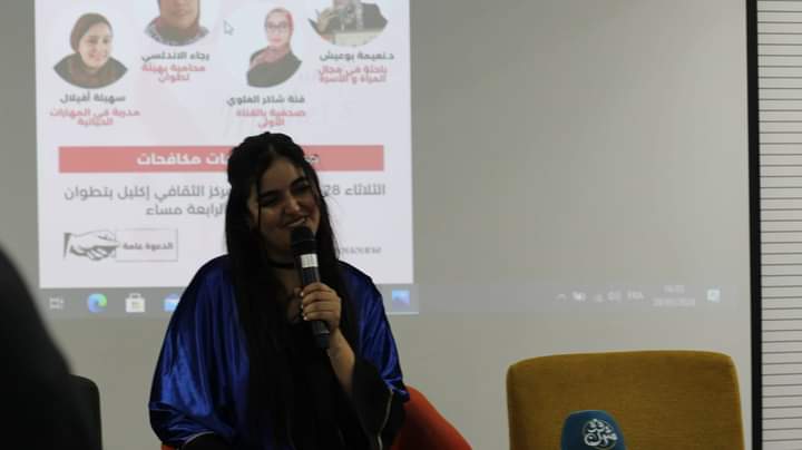 هذا وشهد اللقاء، الذي سيرته الأستاذة سارة كرودي، تكريم سيدتين مكافحتين؛ ثريا التاغي، أول سائقة سيارة أجرة الصنف الكبير بتطوان، ولطيفة البقالي تشتغل في مجال النظافة.