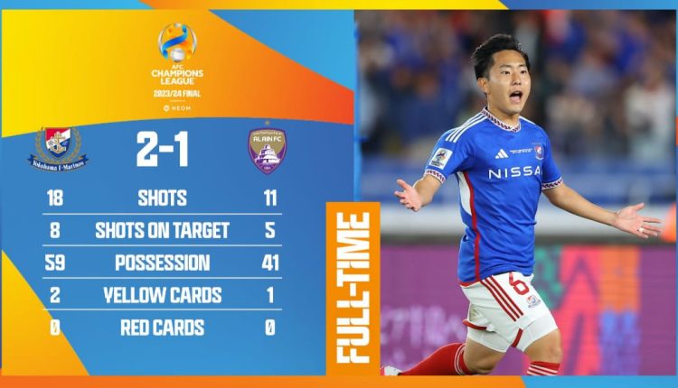 انتهت، المقابلة التي استقبل فيها فريق يوكوهاما إف مارينوس الياباني على أرضه (ملعب نيسان) وأمام جمهوره ضيفه العين الإماراتي ، و فاز عليه بهدفين لهدف وحيد ،  برسم ذهاب نهائي دوري أبطال آسيا .