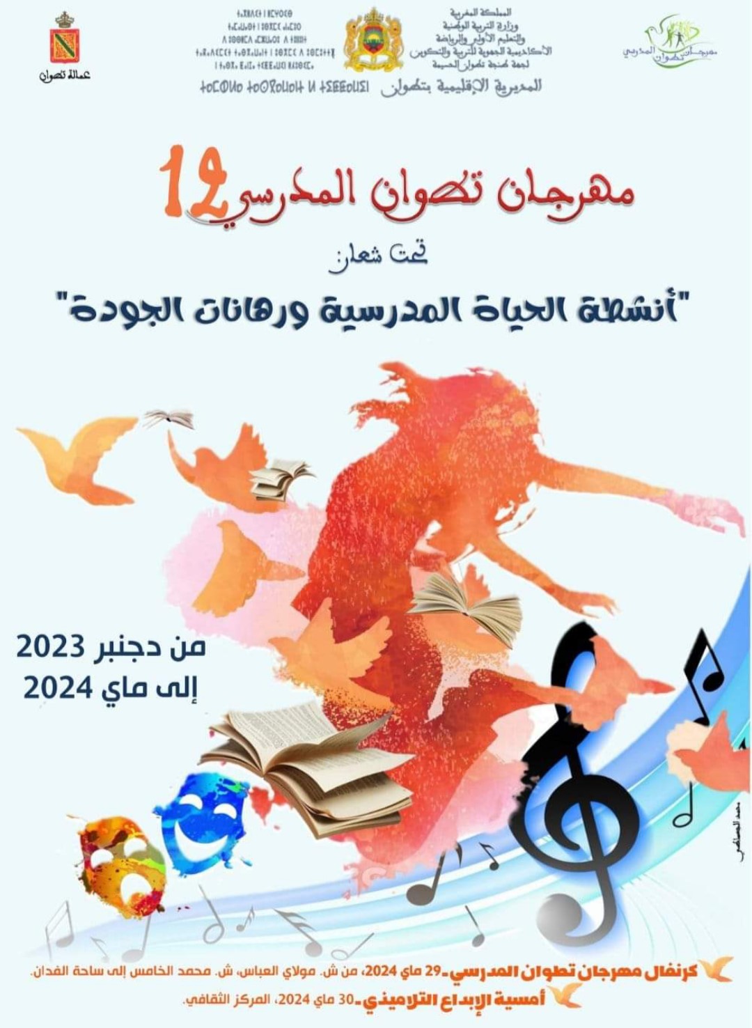 ستكون ساكنة تطوان على موعد مساء اليوم الأربعاء، مع كرنفال سيتم تنظيمه تزامنا مع النسخة 12 من مهرجان تطوان المدرسي ، التي تحتضن فعالياتها الحمامة البيضاء من شهر دجنبر الماضي إلى ماي الحالي، تحت شعار: “أنشطة الحياة المدرسية و رهانات الجودة”.