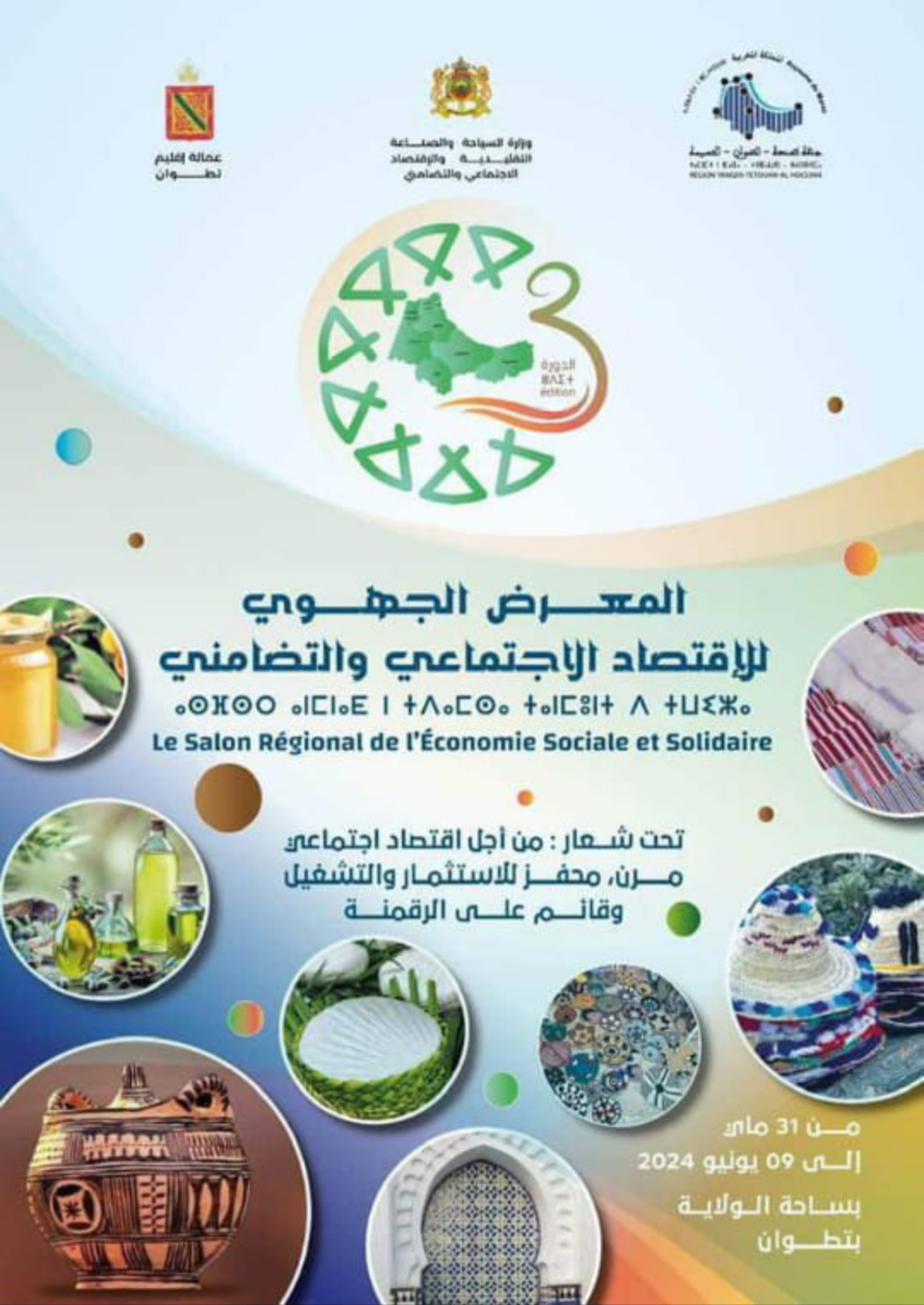يحتضن مسرح الولاية بمدينة تطوان خلال الفترة ما بين 31 من شهر ماي الحالي و 9 يونيو المقبل ، فعاليات النسخة الثالثة من المعرض الجهوي للاقتصاد الاجتماعي و التضامني ، الذي ينظمه مجلس جهة طنجة تطوان الحسيمة بشراكة مع كل من وزارة السياحة و الصناعة التقليدية و الاقتصاد الاجتماعي و التضامني و عمالة إقليم تطوان ، تحت شعار : “من أجل اقتصاد اجتماعي مرن ، محفز للاستثمار و التشغيل و قائم على الرقمنة” .